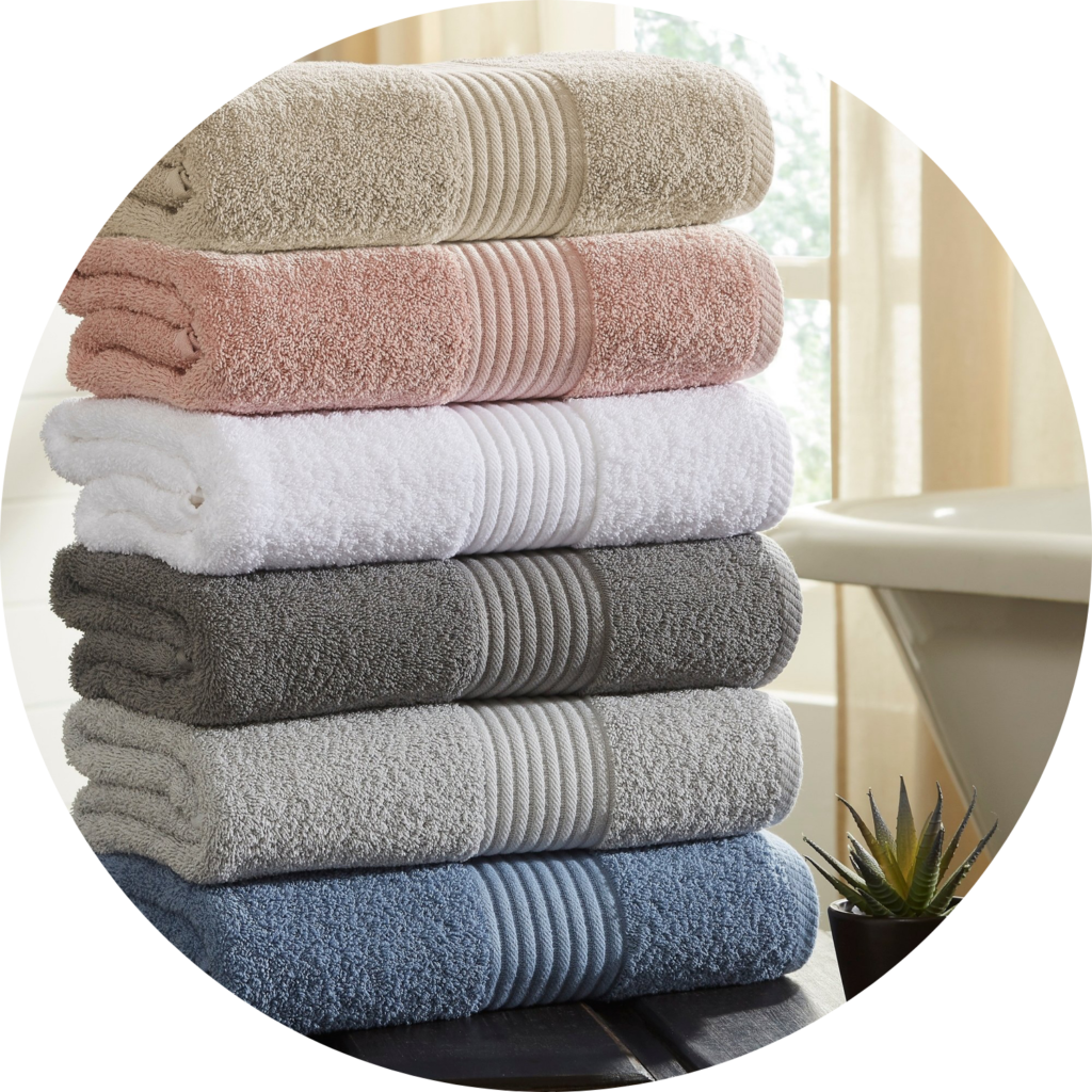 Regular dyed and yarn dyed zero-twist towels in Jacquard and plain designs display great quality and are popular with our clients and their customers alike.